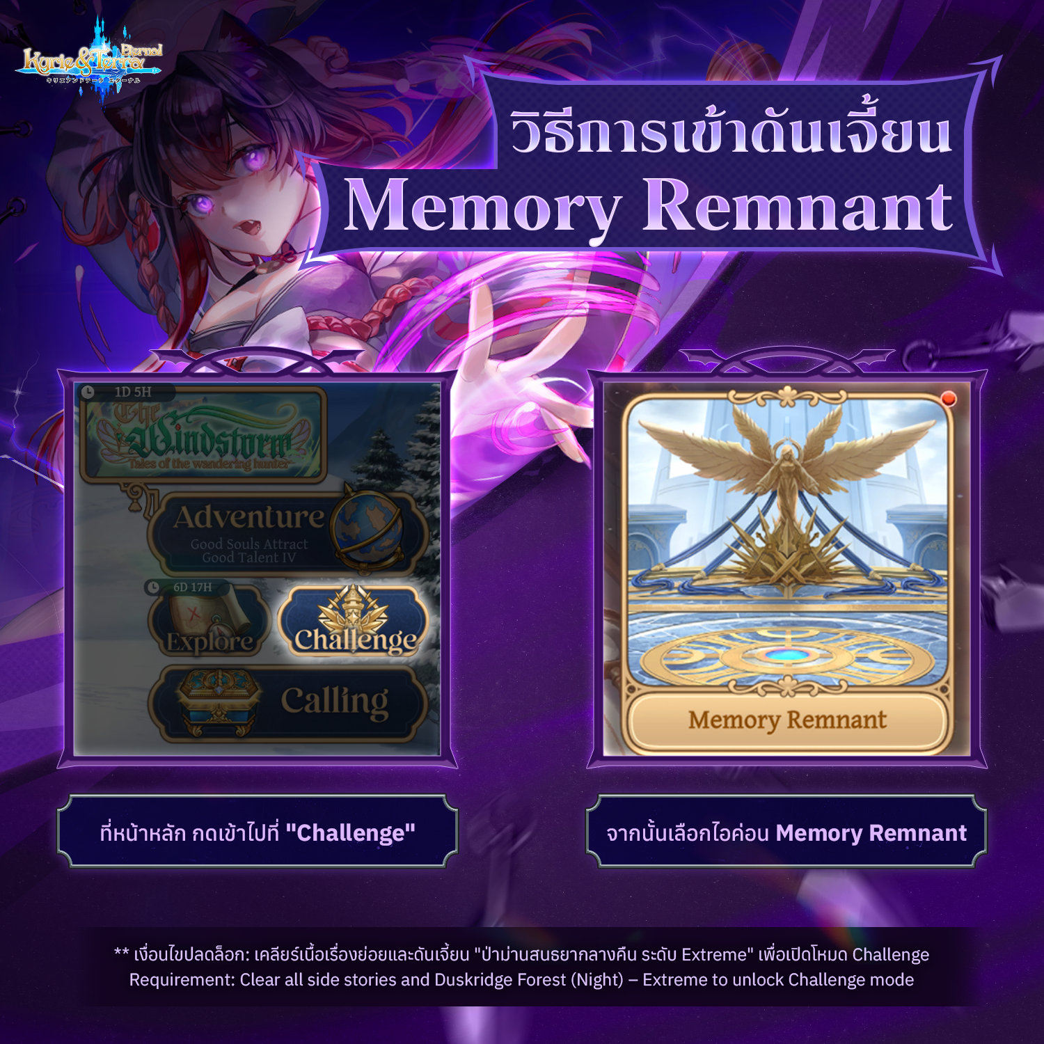 - ผ่านดันเจี้ยน “ป่าม่านสนธยากลางคืน – ระดับ Extreme” (Duskridge Forest (Night) – Extreme)